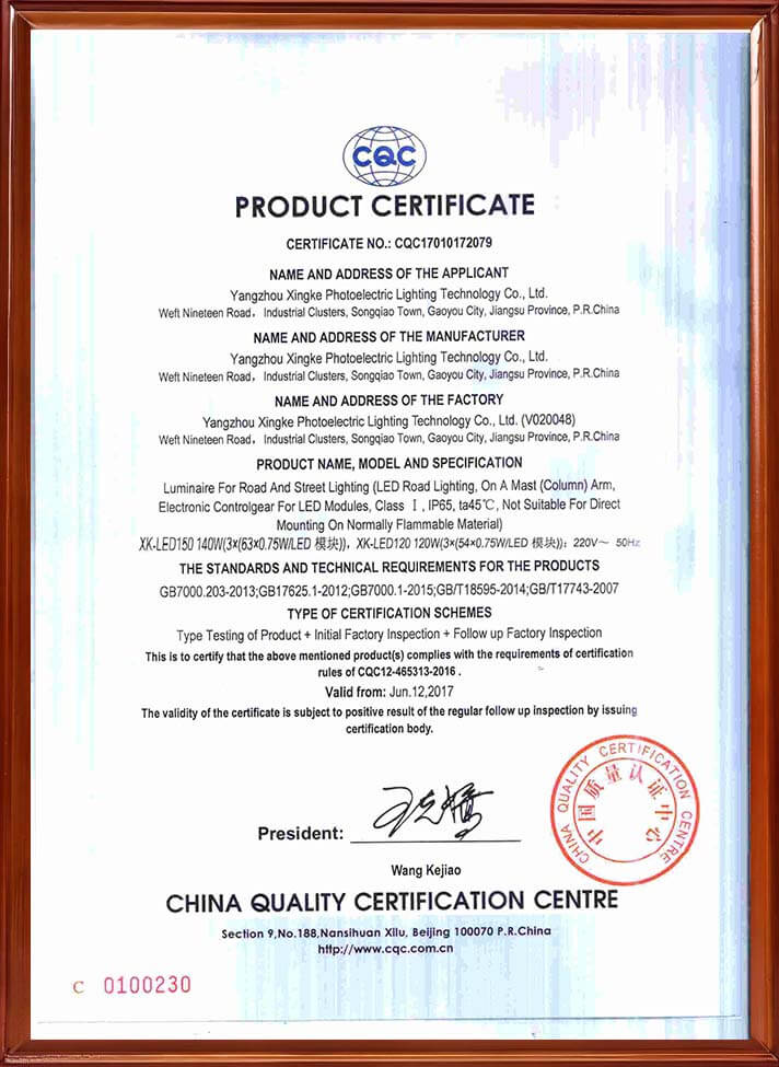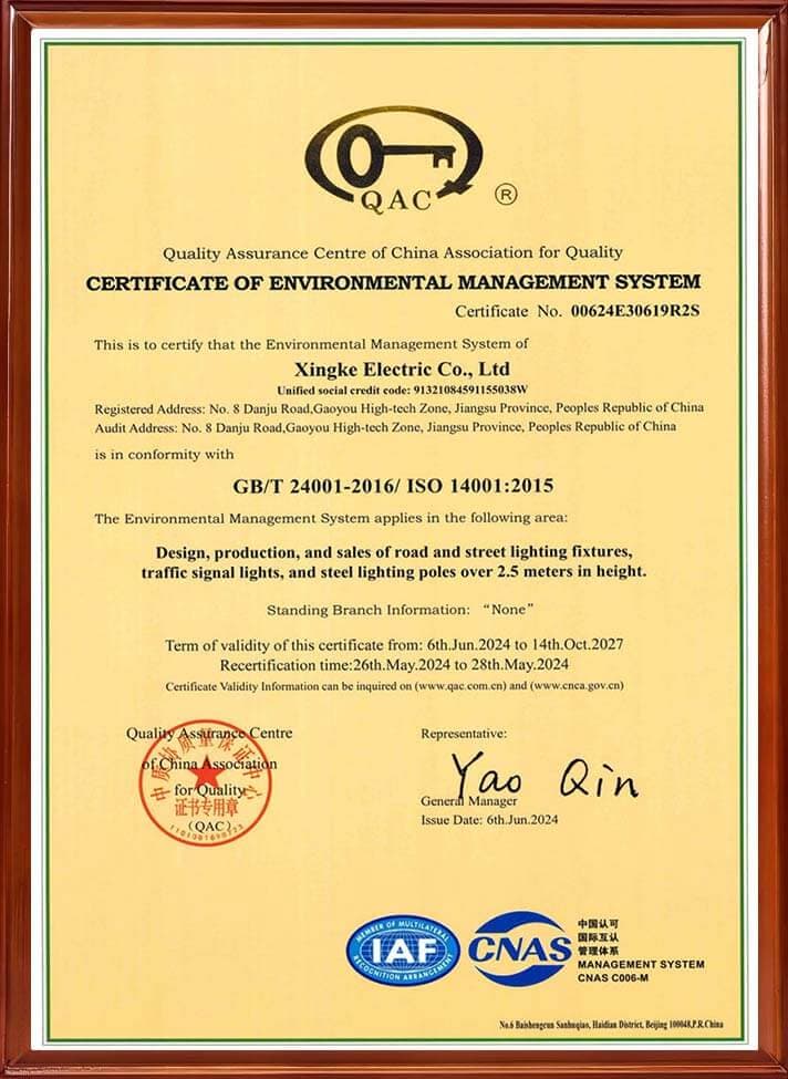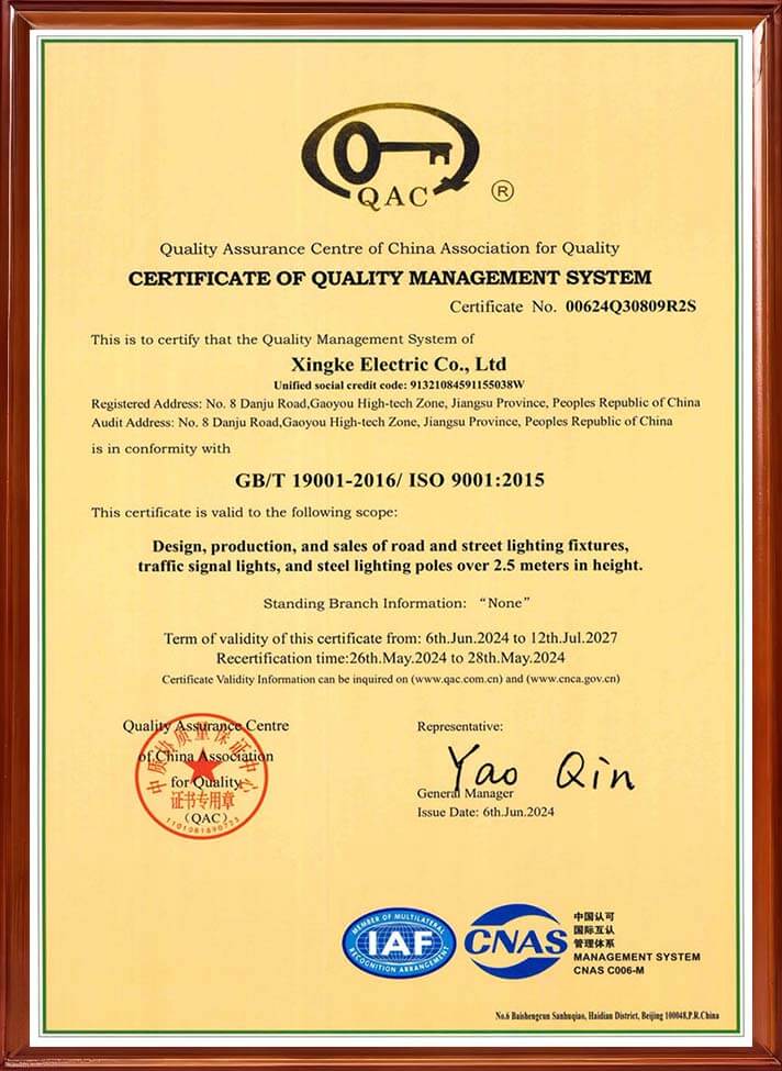 Xingke Lighting is committed to high standards of quality management. Our solar street lights have passed multiple international certifications, including CE, RoHS, and ISO, ensuring safety, reliability, and environmental compliance—trusted by customers worldwide.