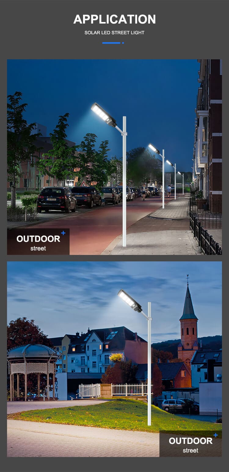 50W-300W integrated solar street light is compared to the split solar street light. Simply put, it integrates the battery, controller, and LED light source into one lamp head, and then configures the battery board, lamp pole or cantilever arm.