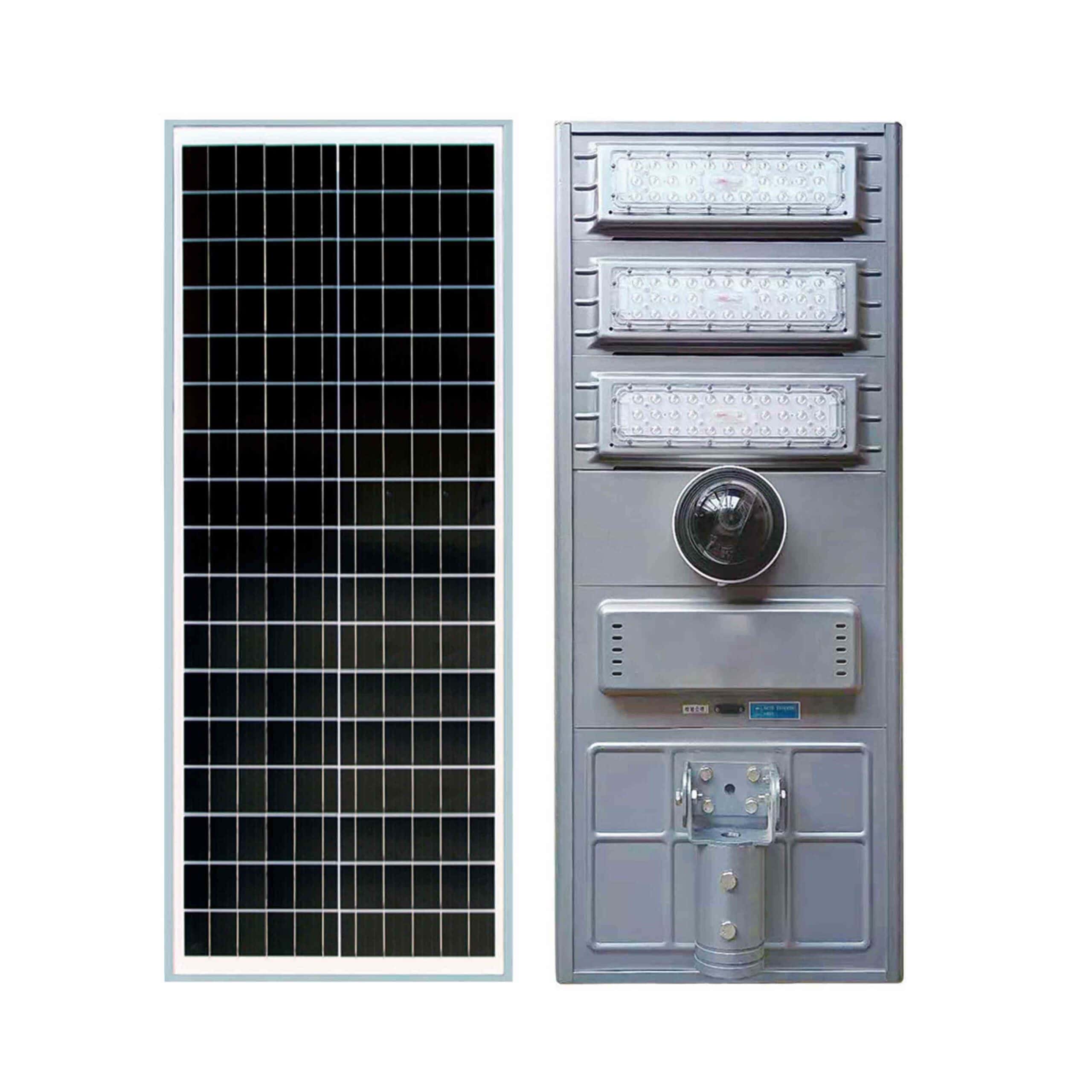 30W-100W integrated solar street light is compared to the split solar street light. Simply put, it integrates the battery, controller, and LED light source into one lamp head, and then configures the battery board, lamp pole or cantilever arm.
